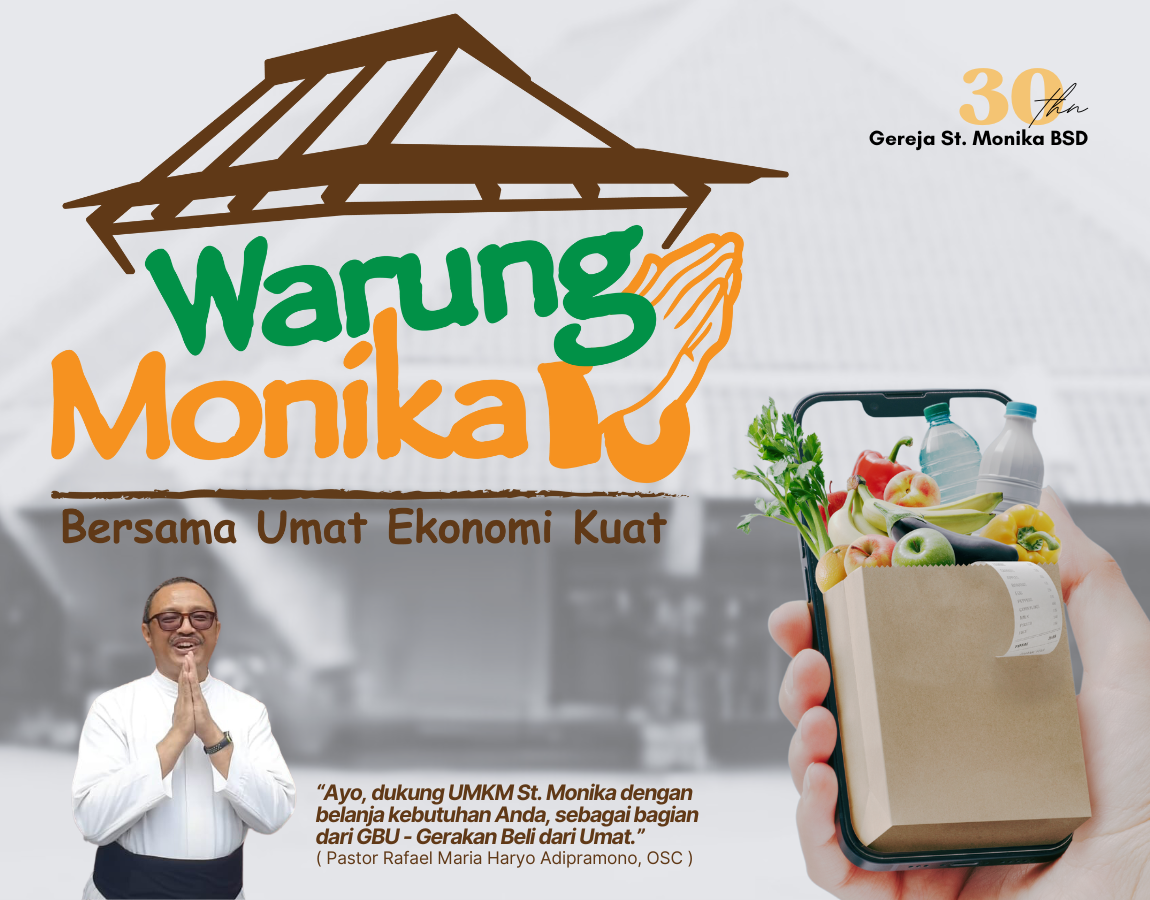Mari kita sukseskan gerakan GBU - Gerakan Belanja dari Umat untuk mewujudkan kesejahteraan bersama dengan mendukung UMKM Paroki Serpong Gereja Santa Monika BSD yang berlandaskan nilai-nilai kasih, kejujuran, dan keadilan dałam semangat kebersamaan Katolik